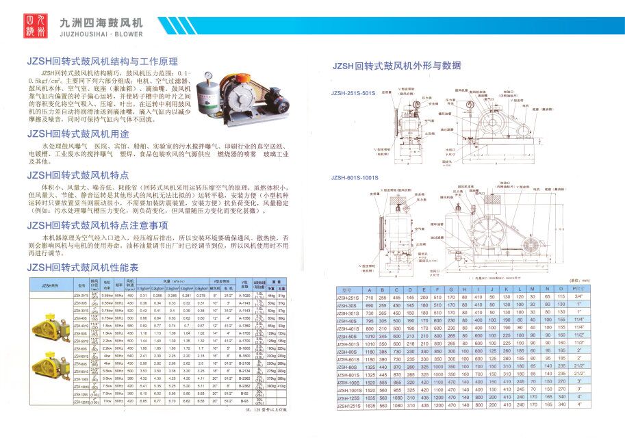 JZSH回轉(zhuǎn)式風機顯著特點: